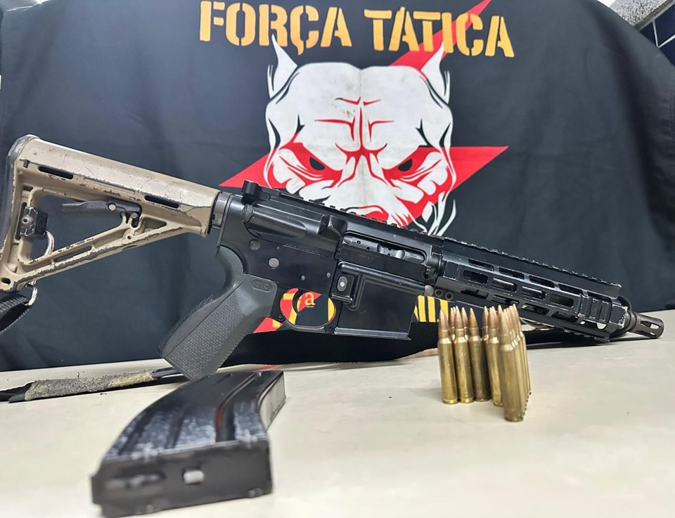 Os militares conseguiram localizar a residência descrita na denúncia e cercaram o local. O suspeito foi encontrado e após buscas na residência, os militares conseguiram localizar 01 fuzil calibre 5.56, com um carregador municiado.