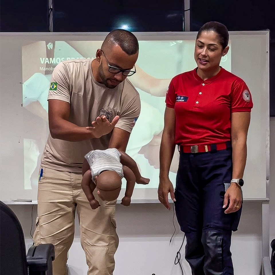A programação contou com demonstrações práticas utilizando simuladores de engasgo — incluindo um manequim infantil que reage ao receber corretamente a manobra — e modelos adultos para aplicação das técnicas de atendimento inicial. Durante o curso, os participantes também aprenderam a avaliar a cena, garantir a segurança do ambiente e agir diante de situações como hemorragias, AVC, convulsões, queimaduras, intoxicações e parada cardiorrespiratória. Ao final, receberam certificados emitidos pela Sesp.