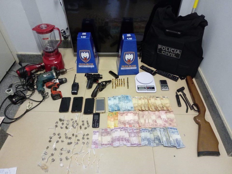 Segundo titular, os detidos foram levados à delegacia local e autuados por tráfico de drogas, associação para o tráfico e receptação. A.S., E.J.G. e W.F.N. foram encaminhados ao Centro de Detenção Provisória (CDP) de São Mateus e os materiais apreendidos foram encaminhados ao fórum local.