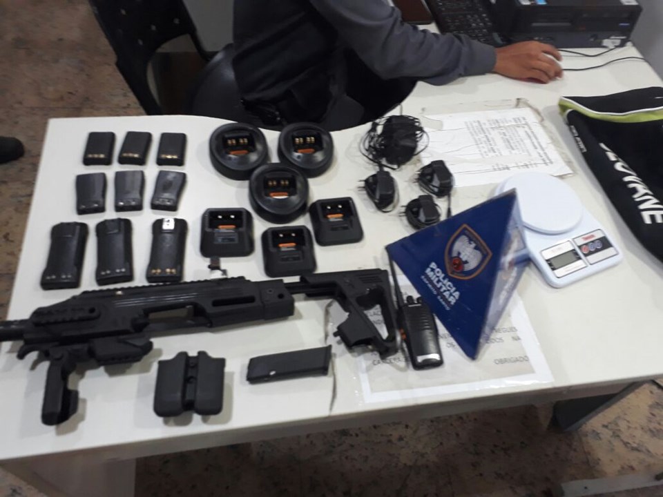 PM apreende adaptador de arma, carregadores, balança e radiocomunicador em Vitória