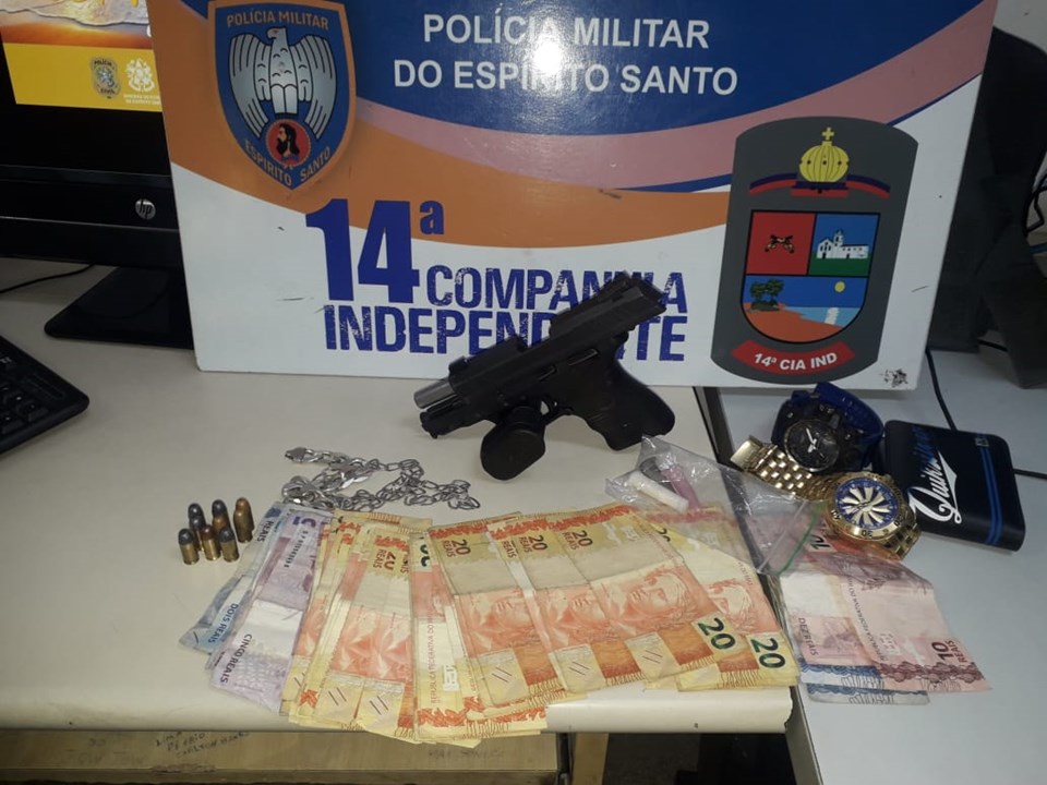 Um indivíduo foi abordado na Praça da Chácara Mar Azul e com ele foi encontrado um pino de cocaína. Com outro suspeito os militares localizaram uma pistola calibre 380, com um carregador com capacidade para 18 munições e nove munições intactas.