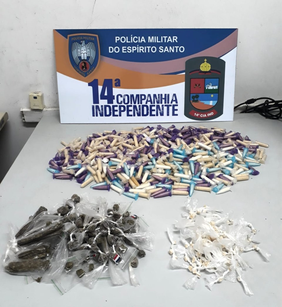 Na tarde dessa quinta-feira (26), policiais militares da 14ª Companhia Independente apreenderam 690 pedras de cocaína, 134 pedras de crack e 114 buchas de maconha, em uma área de mata no bairro Vila Nova de Colares, Serra. A ação contou com o apoio dos cães Airo e Jade da Companhia Independente de Operações com Cães (CIOC). Ninguém foi detido.