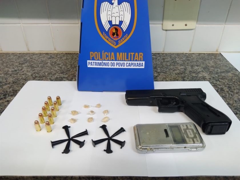 Policiais militares do 10º Batalhão apreenderam drogas e um simulacro de arma de fogo no município de Guarapari nesta última quinta-feira (07).