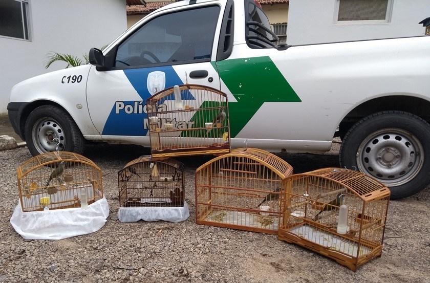 Os animais e gaiolas apreendidos foram depositados na sede da 2ª Cia/BPMA, de onde serão encaminhados ao projeto Cereias, em Aracruz.
