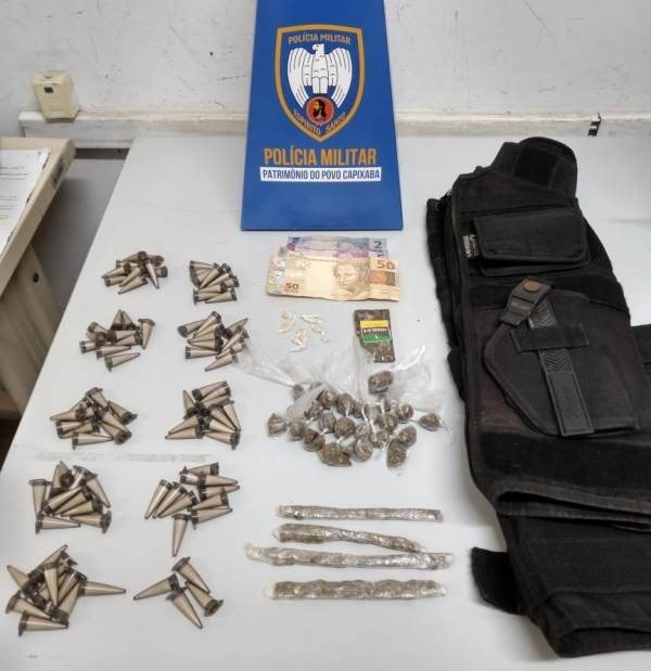 Na madrugada de domingo para segunda-feira (14), militares realizavam patrulhamento no bairro São Diogo atenderam uma denúncia de tráfico de entorpecentes e apreenderam 69 pinos de cocaína, 62 buchas de maconha, nove pedras de crack e cinco papelotes maiores de cocaína.