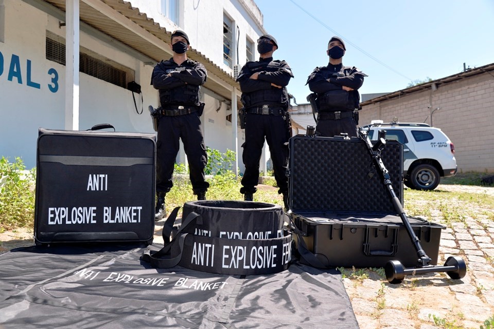 Dentre os equipamentos, foram doadas à Corporação seis mantas anti-explosão que são capazes de resistir aos danos causados pela detonação de um explosivo, bem como absorver os efeitos da onda de choque e dos fragmentos gerados, protegendo pessoas e bens materiais que se encontram próximas ao local da ocorrência.