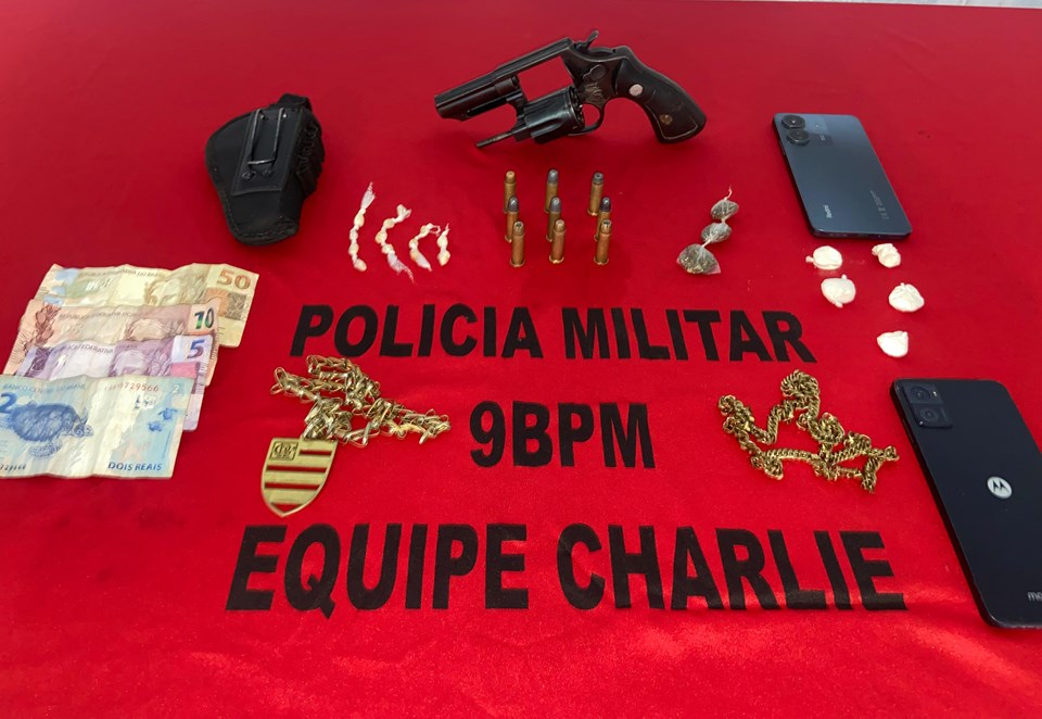No domingo (14), militares receberam denúncia sobre um veículo Ônix prata ocupado por cinco pessoas que estariam comercializando drogas e portando arma de fogo, próximo a um residencial localizado na Avenida Leopoldino Smarzaro. O carro foi localizado durante patrulhamento e, na abordagem, foram apreendidos um revólver calibre 38, nove munições, entorpecentes e celulares. Três ocupantes foram detidos, além de constatada a participação de menores no grupo.