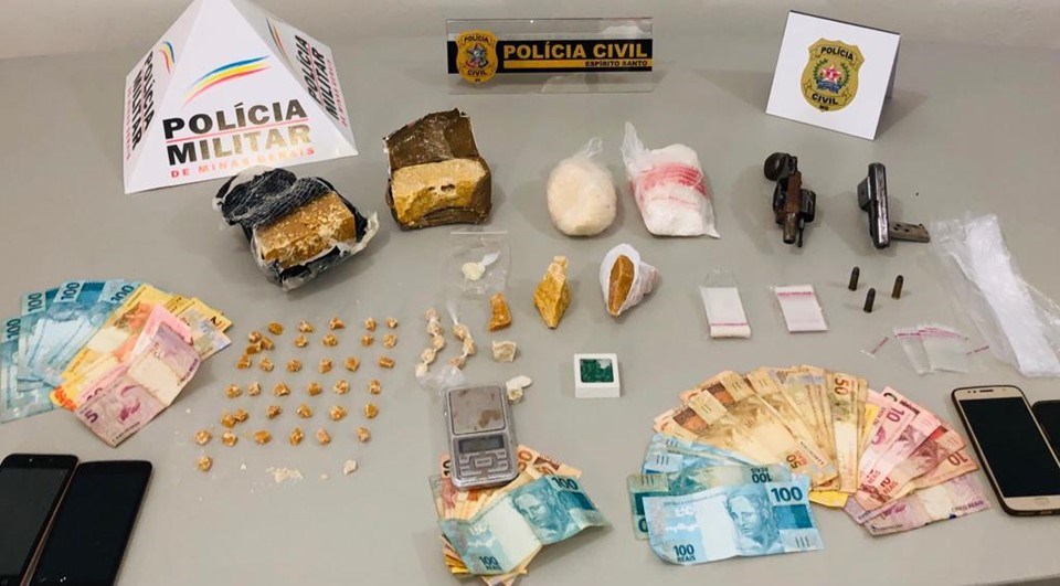 Durante o cumprimento dos mandados de busca e apreensão, os policiais encontraram dois tabletes grandes de crack, uma sacola com cocaína, uma sacola com pasta base, pedras de crack, a quantia aproximada de R$ 2,5 mil e duas armas, sendo uma de calibre 32 e uma beretta 635, que serão analisadas pela perícia para identificar se podem ter sido usadas no crime.