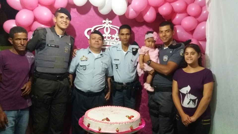 Policiais comemoram aniversário de criança que ajudaram a nascer