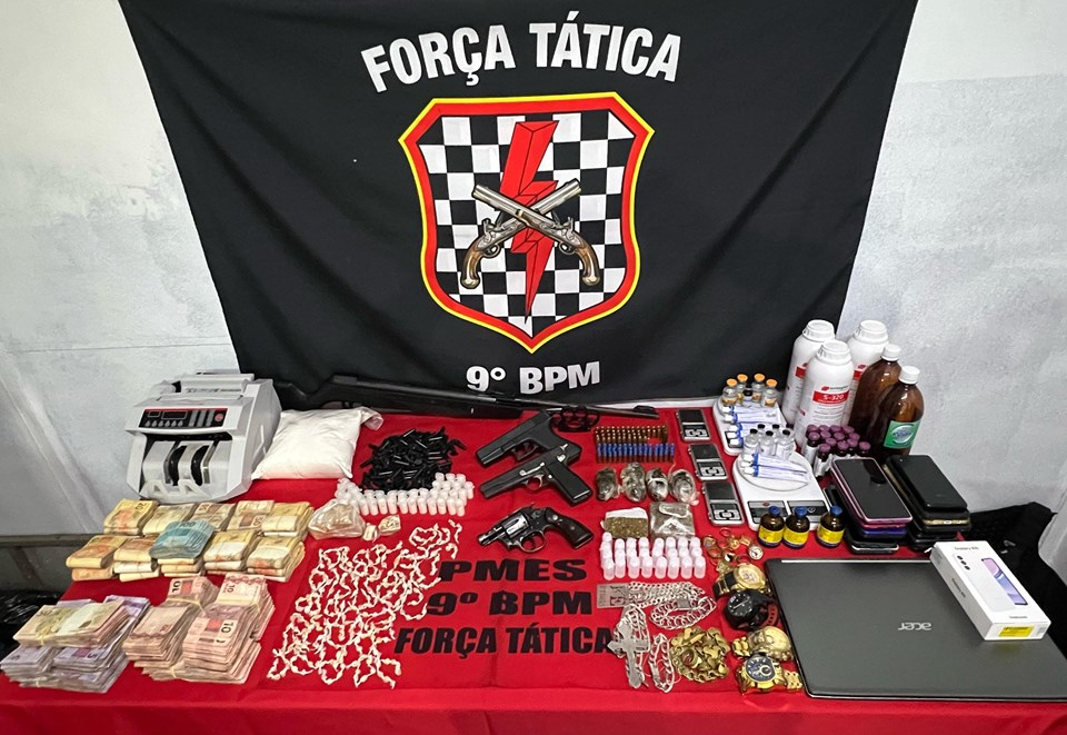 FORÇA TÁTICA DO 9º BATALHÃO APREENDE GRANDE QUANTIDADE DE DROGAS, ARMAS E DINHEIRO EM CACHOEIRO DE ITAPEMIRIM