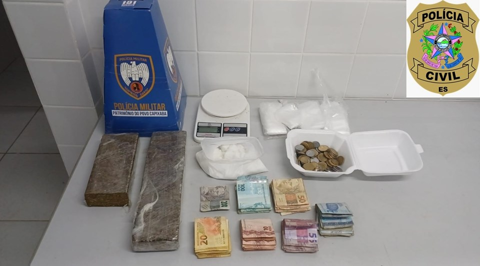Durante as diligências, foram apreendidos os seguintes materiais: um revólver calibre .22, 448 microtubos usados para acondicionar cocaína, uma balança de precisão, R$ 5.417,80 em dinheiro, dois tabletes de maconha com peso total de aproximadamente 1.363 gramas, e uma sacola plástica com cerca de 281 gramas de cocaína.