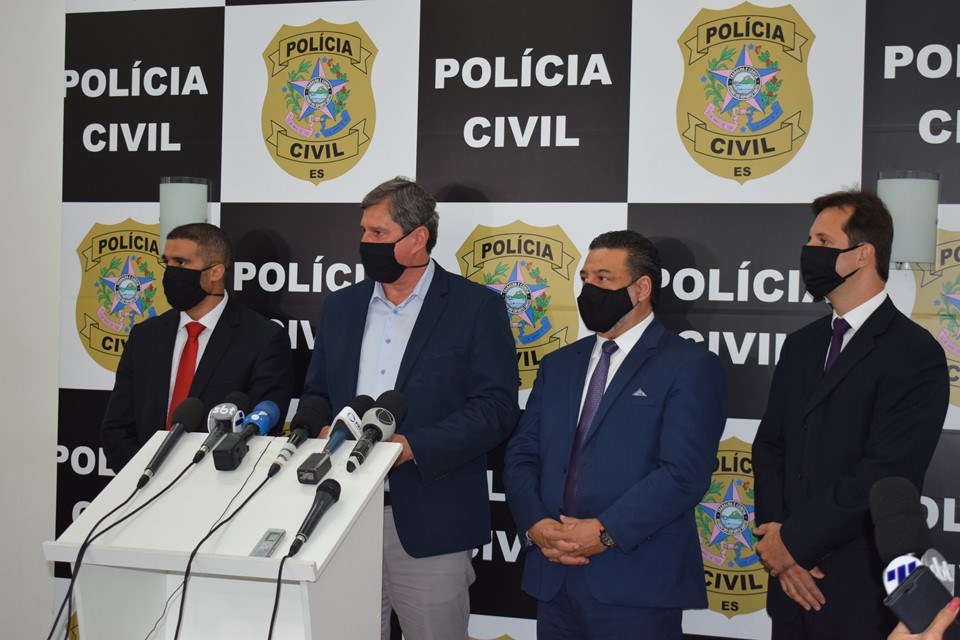 A coletiva de imprensa contou com a presença do secretário de Estado da Segurança Pública e Defesa Social, coronel Alexandre Ramalho; o delegado-geral da Polícia Civil, José Darcy Arruda; o superintendente de Polícia Regional Norte, delegado Ícaro Ruginsk; e o chefe da 18ª Delegacia Regional (DR) de São Mateus e responsável pelas investigações, delegado Leonardo Malacarne.