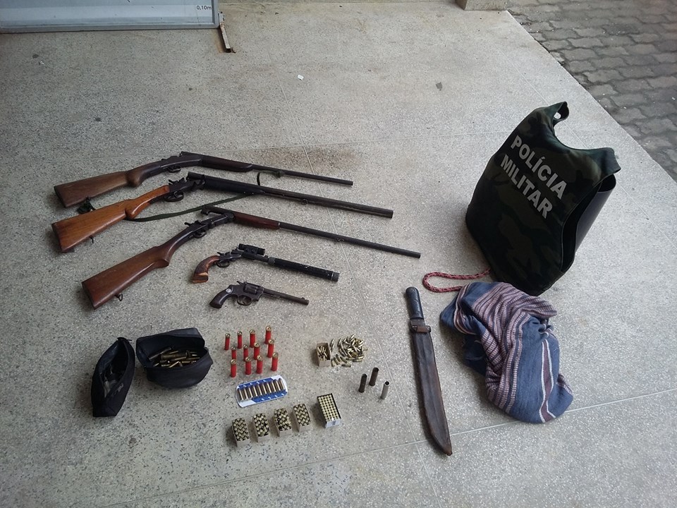 Também foram encontradas 349 munições de diversos calibres e equipamentos utilizados na atividade de caça, como uma roupa camuflada. Questionado sobre o motivo do armamento, o homem confessou que utilizava as armas para caça, mas não atuava a mais de um ano.