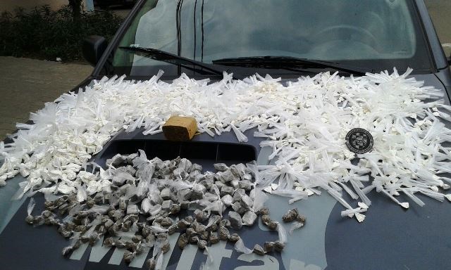 300g de maconha prensada e 192 buchas de maconha. Os entorpecentes estavam