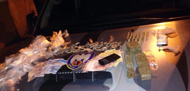 Os policiais receberam informações de que um grupo estaria comercializando entorpecentes em duas residências na região. Durante as buscas, cinco suspeitos, entre eles quatro adolescentes, foram encaminhados à delegacia. Com eles foram localizadas 97 buchas de maconha, 35 pedras de crack, 39 munições de calibre 9 mm e R$ 611,35 em espécie.