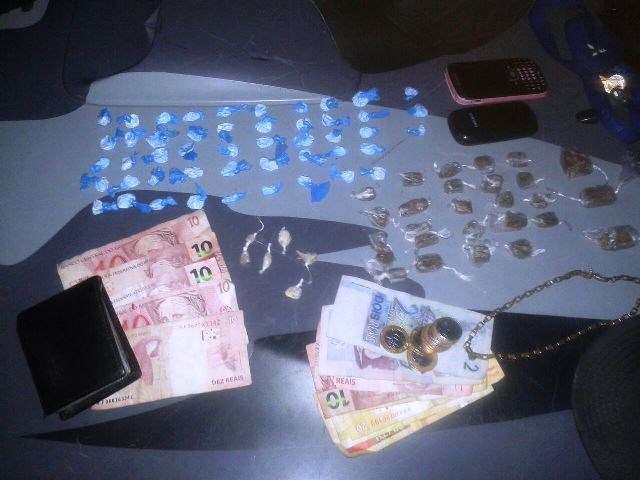 abordagem foram localizados 48 papelotes de cocaína, 27 buchas de maconha, seis