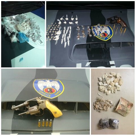 No total, foram apreendidas 502 pedras de crack, 200 buchas de haxixe (resina da maconha), 66 papelotes de cocaína, 51 buchas de maconha e R$ 445,00 em espécie. Foram apreendidos também um revólver calibre 38, um revólver calibre 32 e nove munições de diversos calibres. Treze suspeitos foram detidos.