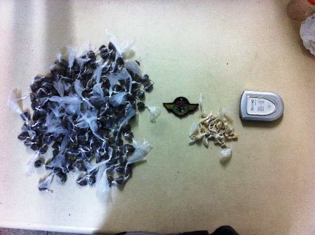 Os policiais da Companhia de Operações com Cães realizavam o patrulhamento no bairro Jardim Carapina quando receberam informações do Serviço de Inteligência do 6º Batalhão de que criminosos estariam escondendo entorpecentes e armas em um terreno baldio nas proximidades da rua Camacan. No local, os cães Iron e Eudis localizaram 190 buchas de maconha, 34 pedras de crack e uma balança de precisão. Ninguém foi detido.