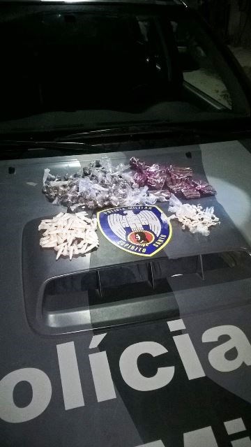 total de 142 buchas de maconha, 59 pinos de cocaína e 49 pedras de crack.