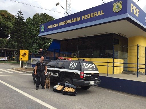 Cão farejador da Polícia Civil localiza 50 quilos de maconha dentro de bagagem