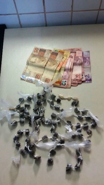 Os militares realizavam patrulhamento quando avistaram dois indivíduos em atitude suspeita, próximos a uma escola no bairro. Eles foram abordados e detidos com seis buchas de maconha e o dinheiro. Com o apoio do cão Iron, foram localizados no local mais 68 buchas de maconha e as pedras de crack.