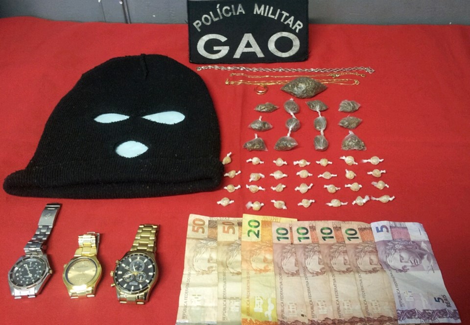 Posteriormente, os militares prosseguiram até a porta da residência e visualizaram em cima de uma mesa algumas buchas de maconha, juntamente com material para embalo da droga. Diante do flagrante, os policiais entraram e apreenderam 13 buchas de maconha. No interior da casa havia mais quatro pessoas, sendo realizada busca pessoal, porém, nada de ilícito foi encontrado. Durante buscas na residência foram apreendidas 28 pedras de crack e R$ 65,00 em espécie.