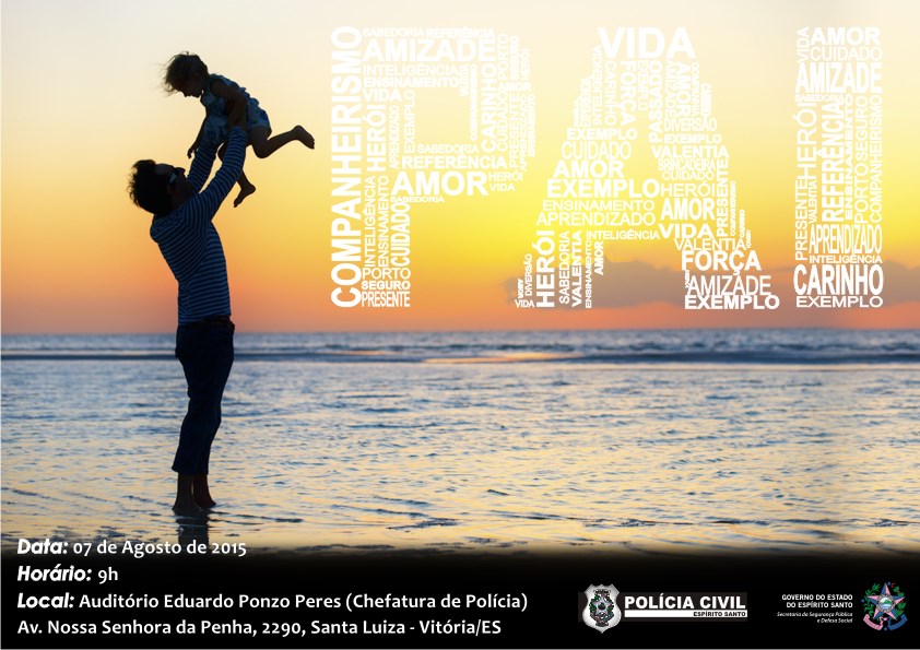 A abertura do evento será feita pela chefe de Polícia, delegada Gracimeri Gaviorno. Na programação estão previstas uma palestra com o tema: Amor e limites na relação entre pai e filho, que será ministrada pela psicanalista Bartyra Ribeiro de Castro e uma apresentação do Coral Domingos Martins composto por servidores da Polícia Civil.