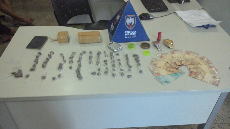 Os militares fizeram uma varredura na residência e encontraram 78 buchas de maconha, duas barras de maconha, uma balança de precisão, R$ 500,00 em espécie, dois relógios, uma munição calibre 12 intacta e dois trituradores de maconha. Ninguém foi detido. O material foi encaminhado para a Delegacia Regional de Vitória.