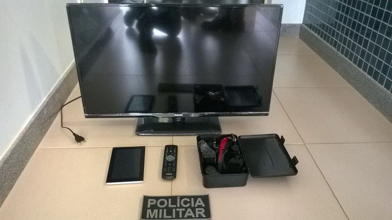 Dois jovens de 19 e 22 anos foram detidos pela Polícia Militar na manhã desta segunda-feira (27), na cidade de Pinheiros. Um deles é acusado de crimes de furto/roubo e o outro de receptação de produtos furtados/roubados. Com a dupla, os militares apreenderam uma TV de 42 polegadas, um tablet e uma máquina de cortar cabelo.