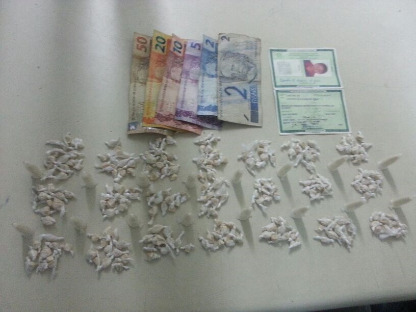Quando o suspeito percebeu a aproximação dos militares, tentou fugir, mas não obteve sucesso. Ao verificar o conteúdo da sacola plástica, os policiais constataram que havia 226 pedras de crack, 16 pinos de cocaína. Próximo da sacola estava também a quantia de R$ 89,00 em espécie.