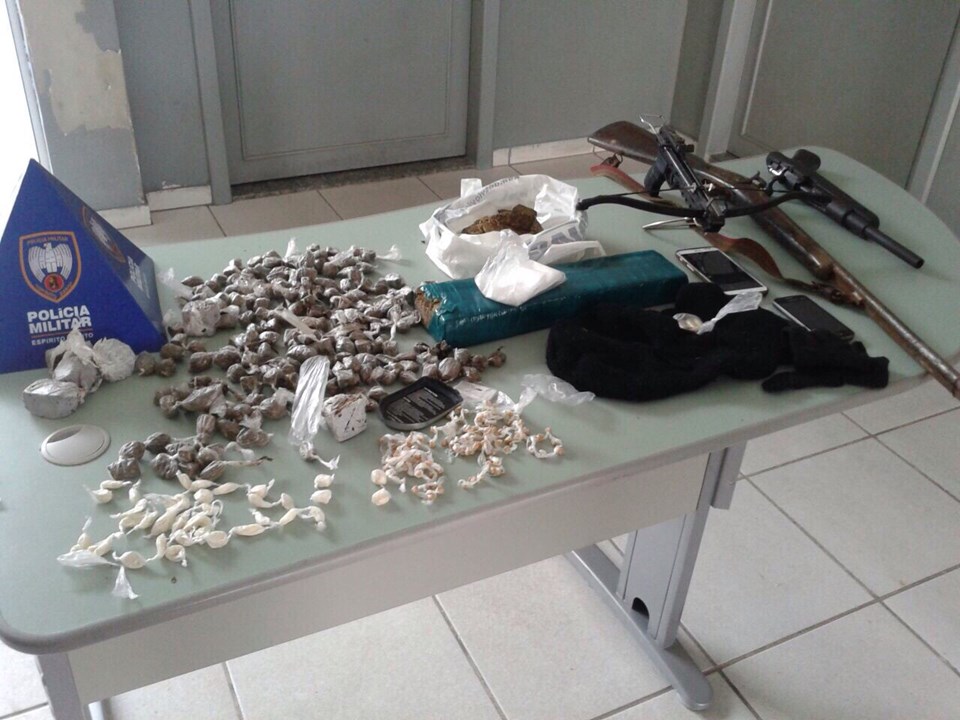 No total, foram apreendidas 585 pedras de crack, 196 gramas do mesmo entorpecente, 393 buchas de maconha, 2,253kg da mesma droga e 45 papelotes de cocaína. Além disso, outros materiais também foram apreendidos, como R$ 5.158,00, 17 aparelhos de celular, três potes de espoleta