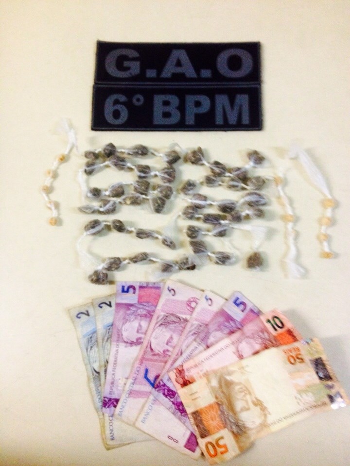 Policiais militares do Grupo de Apoio Operacional (GAO) do 6º Batalhão apreenderam um menor de 17 anos com drogas e dinheiro, durante patrulhamento pelo bairro Colina da Serra, na noite desta terça-feira (26). Ele já tinha passagens pela Polícia.