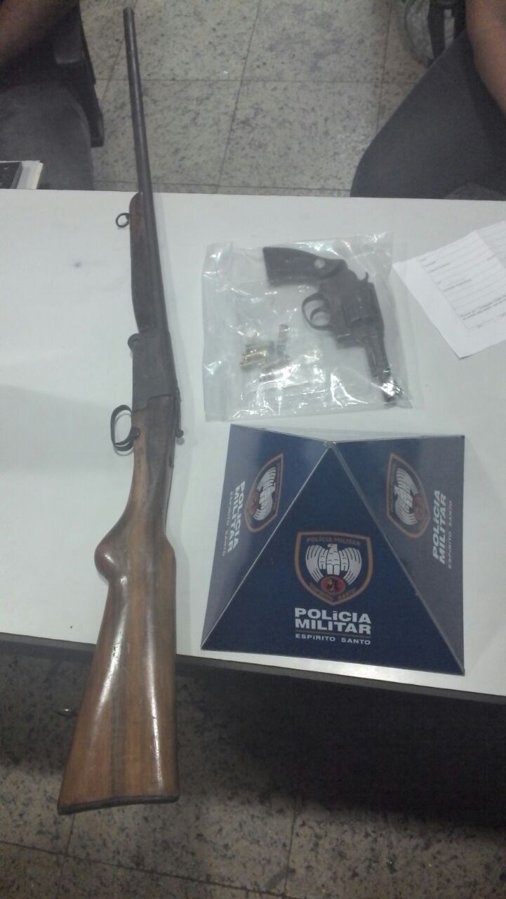 carabina calibre 28 e um revólver calibre 38 na casa do menor. Ainda foram