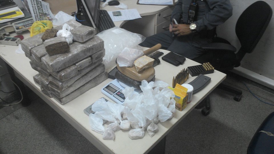 No total foram encontrados 10,854 quilos de maconha, 2,037 quilos de crack, 1,054 quilos de cocaína, além de um carregador de pistola calibre 380, 19 munições do mesmo calibre, e um carregador calibre 556 e 40 munições do mesmo calibe.