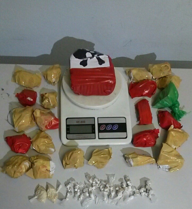 No Bairro das Laranjeiras, os militares receberam a denúncia de que uma residência na região estaria sendo utilizada por traficantes para esconder entorpecentes. No endereço citado, os militares conseguiram encontrar 70 pedras pequenas de crack, 23 pedaços em tamanho médio do mesmo entorpecente, um pedaço grande também de crack e uma balança de precisão.