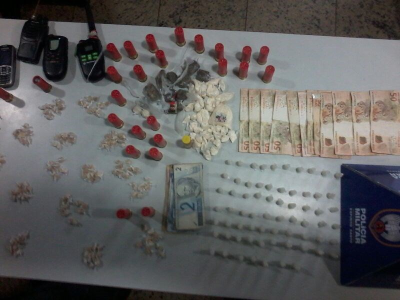 Na terça foram apreendidas nove buchas de maconha, 262 pedras de crack, 33 papelotes de cocaína, 67 pinos da mesma droga, cinco bolas de haxixe, um frasco de lóló, além de 25 munições calibre 12, três rádios comunicadores e R$ 806,00 em espécie.