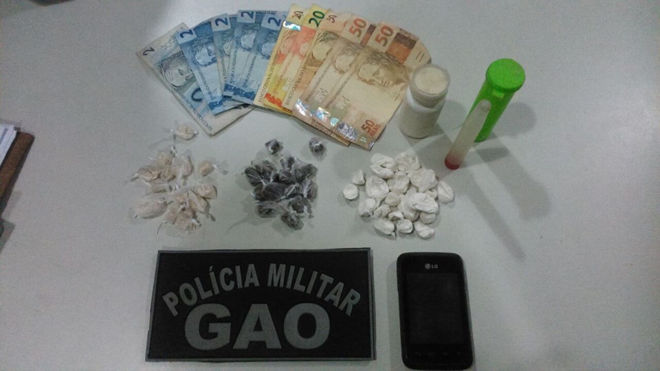 No total foram apreendidos 23 pepalotes de cocaína, 15 buchas de maconha e 13 pedras de crack. Também foram encontrados R$ 200,00 em espécie.