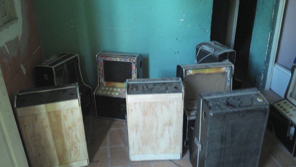 Após indagar o indivíduo sobre o que teria na parte superior do imóvel, o suspeito disse que havia algumas máquinas e gabinetes para conserto, manutenção e montagem. No local foram encontradas 15 máquinas, sendo sete com componentes eletrônicos e oito gabinetes de máquinas a serem montadas.