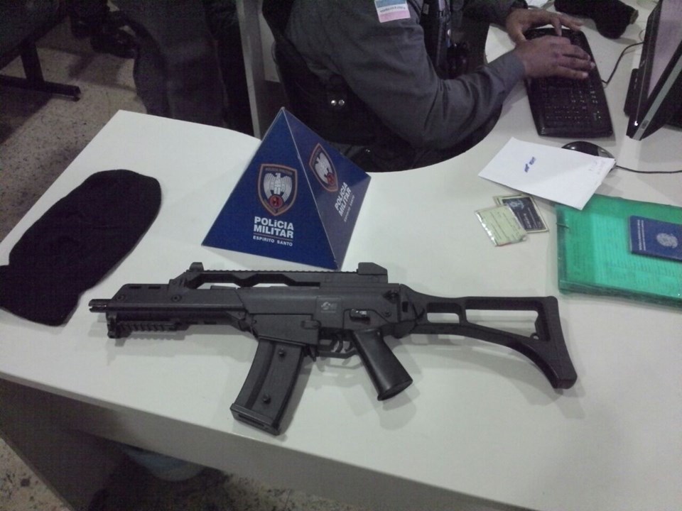 Delegacia Regional de Vitória juntamente com o simulacro da arma de fogo.