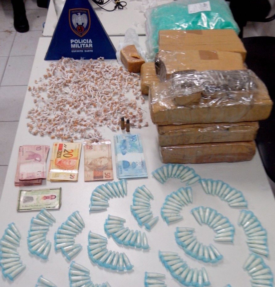 Policiais militares do 4º Batalhão realizaram uma operação no bairro Ilha da Conceição, em Vila Velha, na madrugada desta quinta-feira (28). Em uma residência, foram localizados nove quilos de maconha, 722 pedras de crack, 259 pinos de cocaína, dois pacotes de pinos vazios para o embalo da mesma droga, além de duas munições intactas calibre 38 e R$1.980,00 em espécie. Um indivíduo foi detido.