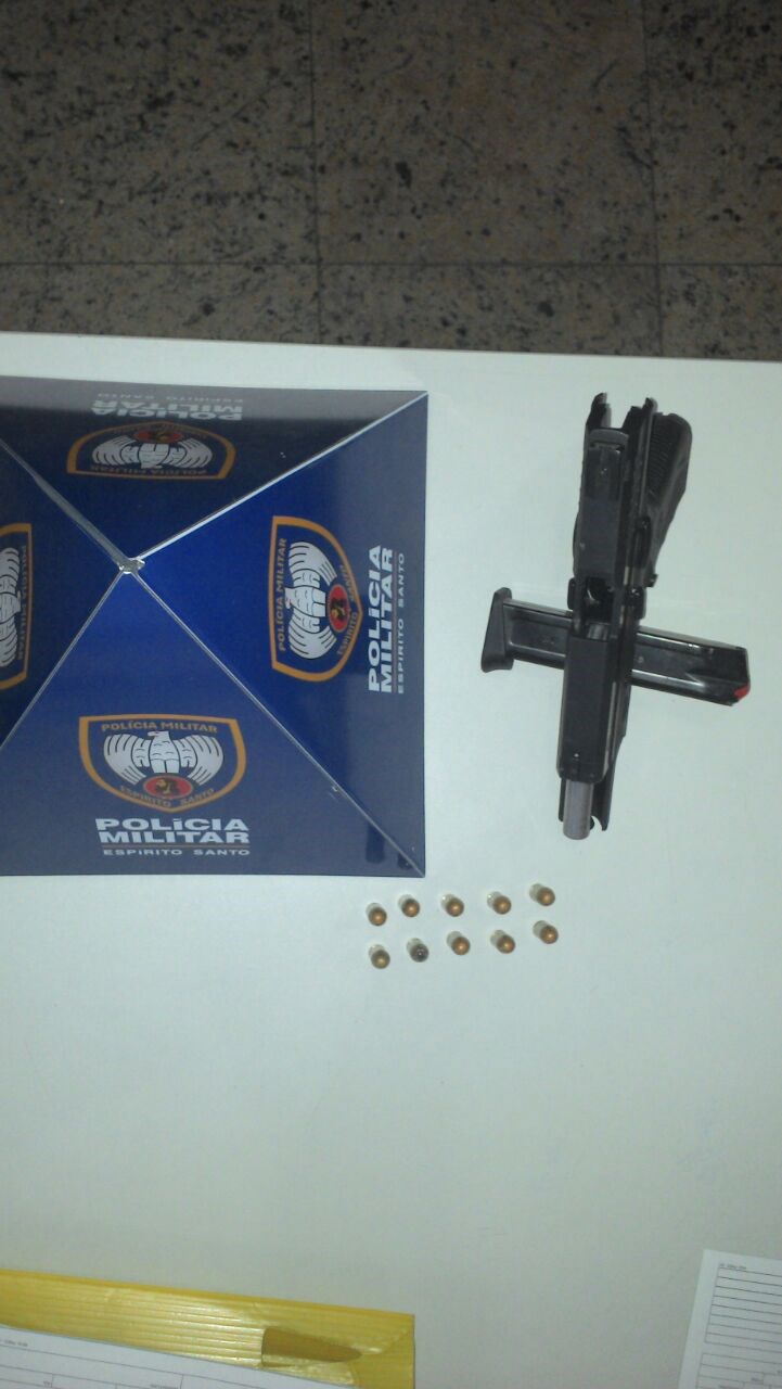 Policiais militares do 1º Batalhão prenderam um indivíduo com uma pistola calibre 380 durante patrulhamento no bairro Santa Helena, em Vitória, na manhã desta terça-feira (09).