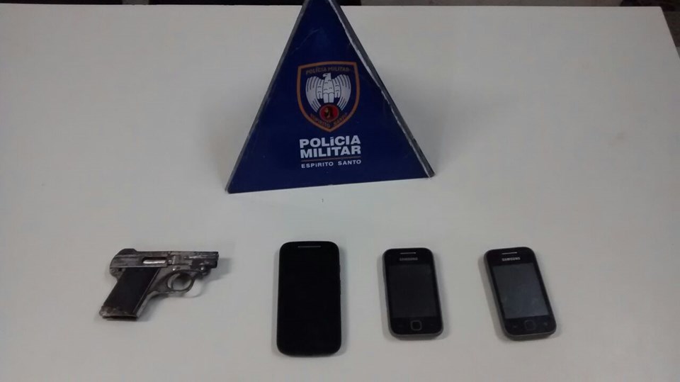 de Vila Velha, junto com os materiais roubados e a arma de fogo.
