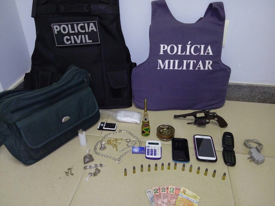 No total, foram apreendidas 578 pedras de crack, 44 papelotes de cocaína, 254 buchas de maconha, além de R$ 3.515,00 em espécie, dois potes de espoletas, um pote de ácido bórico, dois de pólvora, quatro de chumbo, nove munições deflagradas, quatro trituradores de maconha, um soco inglês, uma adaga e um pio de caça.