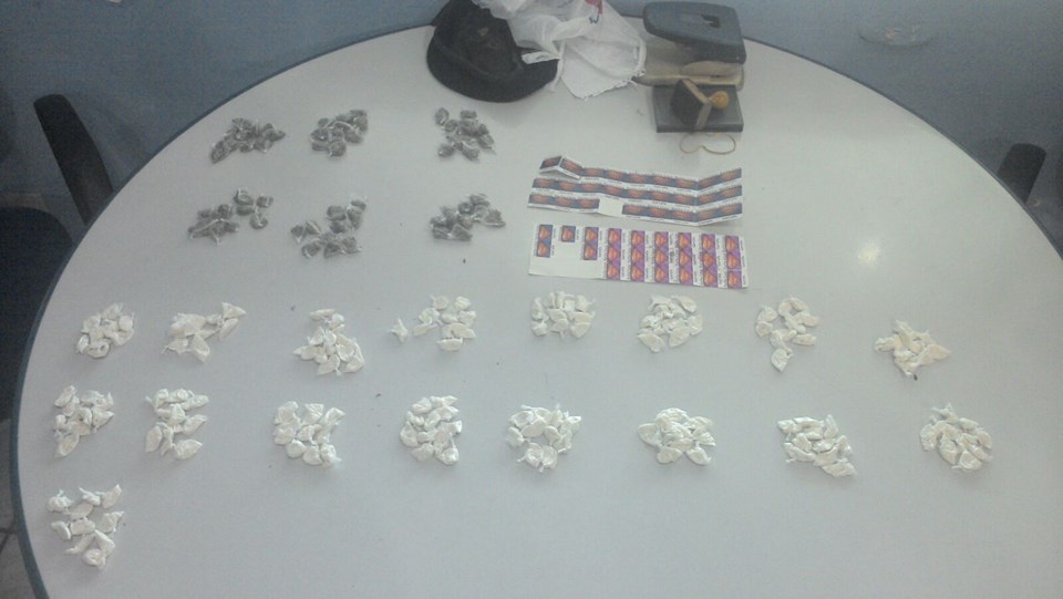 Uma equipe do 1º Batalhão patrulhava o Beco Camomila, no bairro Santa Helena, na manhã de hoje (21), quando próximo a igreja Quadrangular foram encontrados 170 papelotes de cocaína e 60 buchas de maconha, além de adesivos para identificação do material. Ninguém foi detido e o material foi entregue na Delegacia Regional de Vitória.