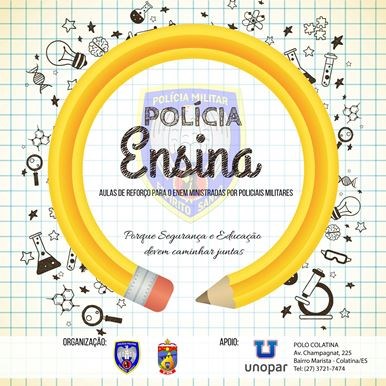 Neste sábado (03), terá início o projeto “Polícia Ensina”, idealizado pelo 8º Batalhão da Polícia Militar, em Colatina. O projeto tem o objetivo de preparar os alunos da rede pública para o Exame Nacional do Ensino Médio (ENEM). Os conteúdos serão ministrados por policiais militares com formação nas áreas.