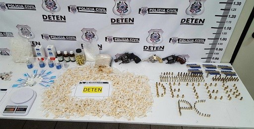 Foram apreendidos três revólveres, 248 munições de diversos calibres, 1quilo de crack, 820 papelotes de cocaína e material para embalar o entorpecente. O material foi encontrado dentro da residência de D. L. C., 22 anos. Conforme o responsável pela operação, delegado Fabiano Rosa, a prisão foi possível devido a uma informação recebia pelo Disque Denúncia -181.