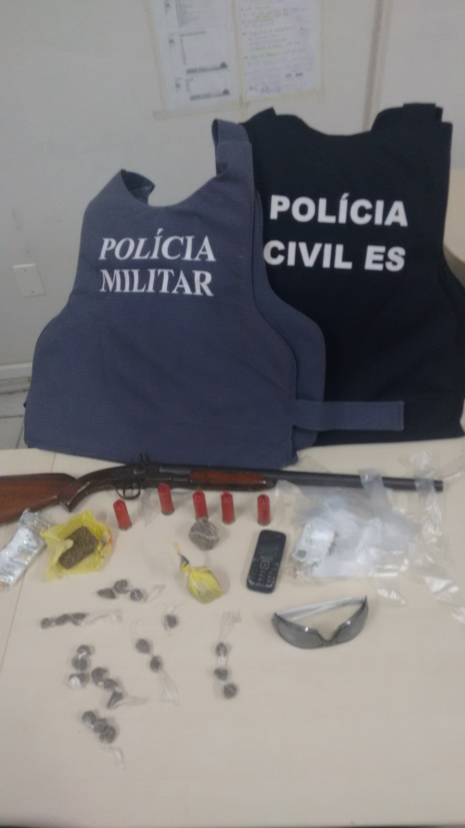 Nesta terça-feira (21), os policiais civis da Delegacia de Sooretama em conjunto com militares realizaram uma operação com objetivo de cumprir o mandado de prisão temporária por homicídio de J.C.P.O., 19 anos. Ele foi detido em casa no bairro Salvador, no município. Dentro da residência do suspeito os policiais apreenderam uma espingarda calibre 228, 12 munições do mesmo calibre, três porções médias de maconha e um aparelho celular.