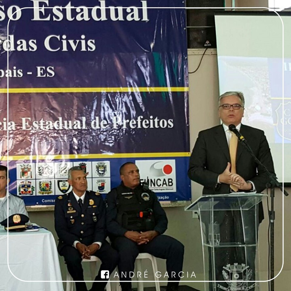 O secretário de Estado da Segurança Pública e Defesa Social, André Garcia, participou da abertura do II Congresso Estadual das Guardas Civis Municipais, realizado em Itapemirim, na tarde desta segunda-feira (01). Também estiveram no evento prefeitos municipais e coordenadores das Guardas municipais de todo o Estado.