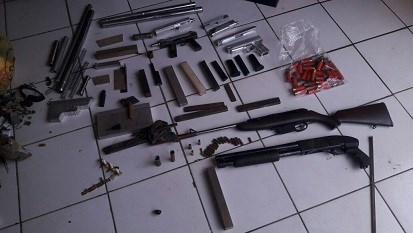 lá, os policiais encontraram diversas armas, munições e materiais para a