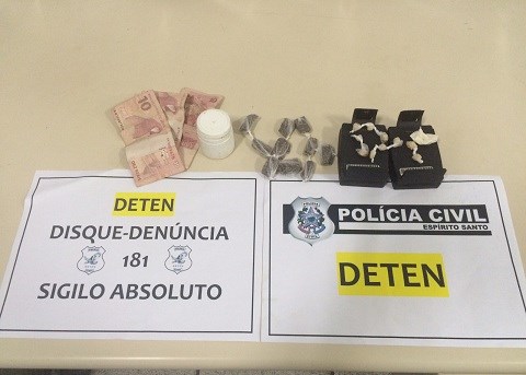 Policiais civis da Delegacia Especializada em Tóxicos e Entorpecentes (Deten) prenderam, nessa terça-feira (06), M.A.S., 22 anos, no bairro Vila Graúna, em Cariacica. Com o suspeito foram encontradas 10 buchas de maconha, 10 pedras de crack, um papelote de cocaína e R$30,00, em espécie.